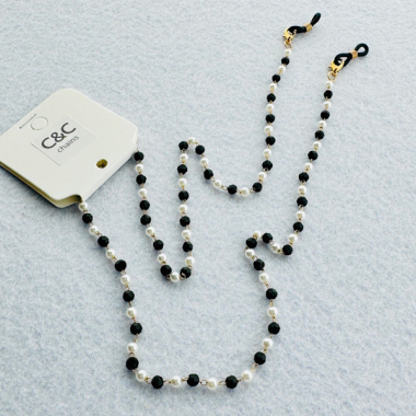 Correntes e Pontas Metal Com Missangas Acrílico Preto Facetado e Pérolas Sintéticas, 66 cm