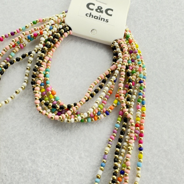 Pack de 6 unidades Correntes Missangas em acrílico coloridas e dourado 66 cm (múltiplos de 6)
