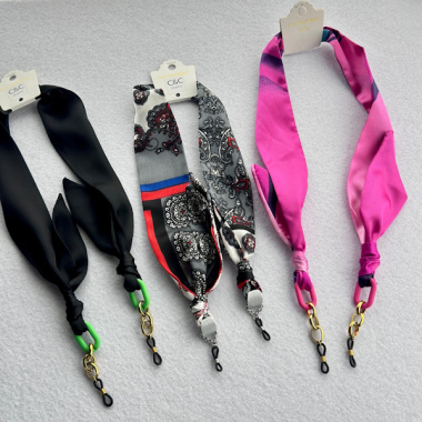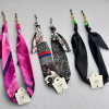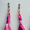 Pack 3 Fitas Cetim de Seda , Pontas Acrílico e Porcelana com Corrente em Aço , 62 cm 3 Temas Preto e Verde, Colorida e Rosa Fuchia