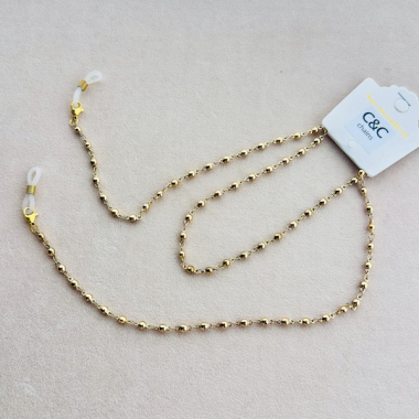 Corrente de Bolinhas em Aço Dourado, 70 cm