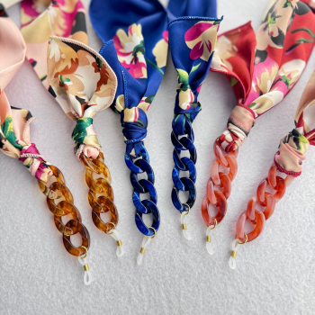 Pack de 3 Fitas Cetim de Seda Floral Bordeaux/Azul/Rosa e Corrente de Massa