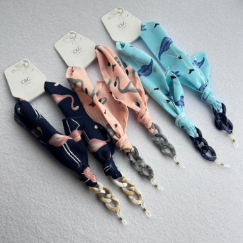Fitas Cetim de Seda Flamingos Azul Marinho/Azul/Salmão e Corrente de Massa (CCSM200)