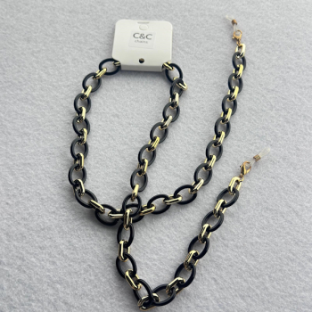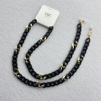 Corrente em Massa Elos Ovais e Nó, Preto e Dourado (CCM100)