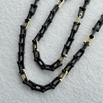 Corrente em Massa Elos Ovais e Nó, Preto e Dourado