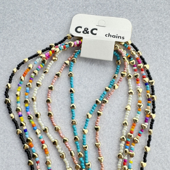 Corrente de Missangas de Acrílico Sortido com Corações Dourados (EV80)