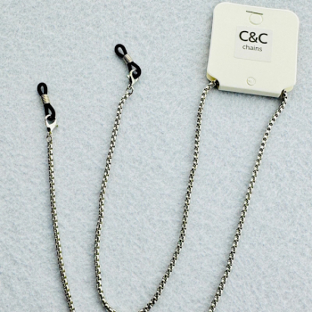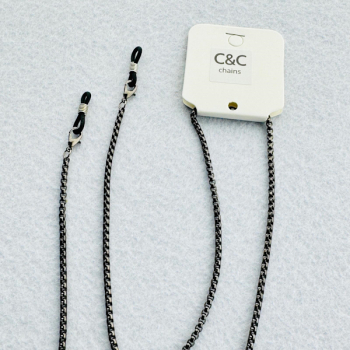 Corrente Missangas Acrílico, Pontas em Metal . Preto, Cinza, Prateado e Dourado