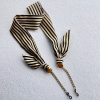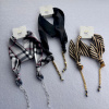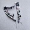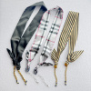 Pack de 3 Fitas Cetim de Seda Xadrez Cinza/Preto/Preto e Camel com Pontas em Porcelana e Corrente Aço (múltiplos de 3)