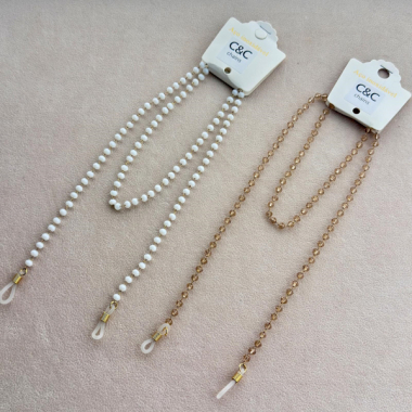 Corrente e Peças em Aço com Vidrinhos Facetados, 64 cm