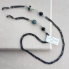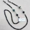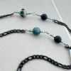 Correntes e Peças em Aço Onix Baço, Quartzo Verde e Cristais Swarovski, 66 cm . Pode ser usado como colar.