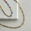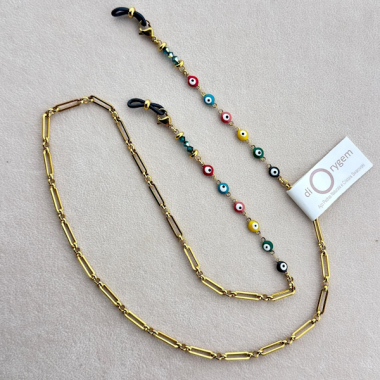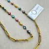 Corrente e Peças em Aço com Olhos Turcos Coloridos e Cristais Swarovski, 66 cm . Pode ser usado como colar.