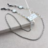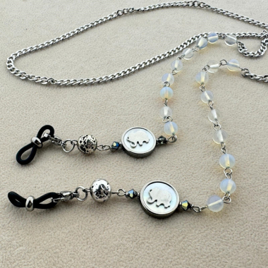 Corrente e Peças em Aço Prateado, Madre Pérola, Pedras da Lua, Elefante e Cristais Swarovski, 66 cm . Pode ser usado como colar.